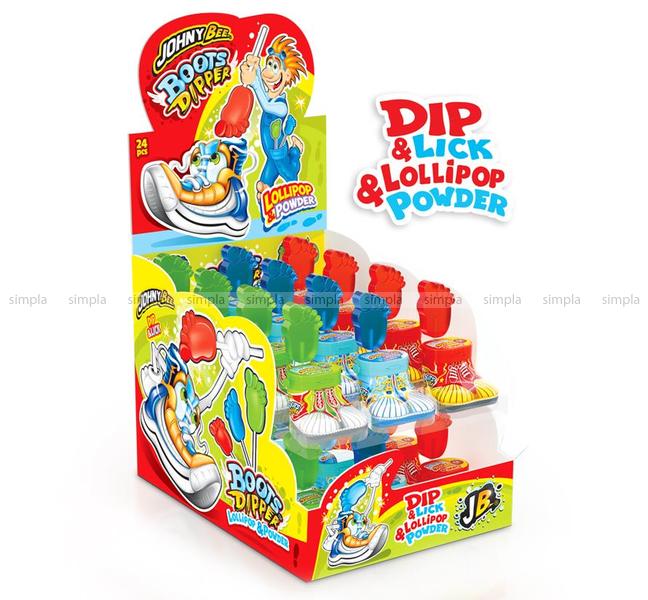 В нашем интернет-магазине Вы можете купить "Карамель леденцовая на палочке Dip n Lick Ботинки с пудрой (Boots Dipper) Johny Bee 30 грамм" по низкой оптовой цене с быстрой и удобной доставкой в г.Калининград (Калининградская область). Мы предлагаем широкий ассортимент импортных сладостей и напитков от проверенных поставщиков и реализуем продукцию во всех регионах РФ.