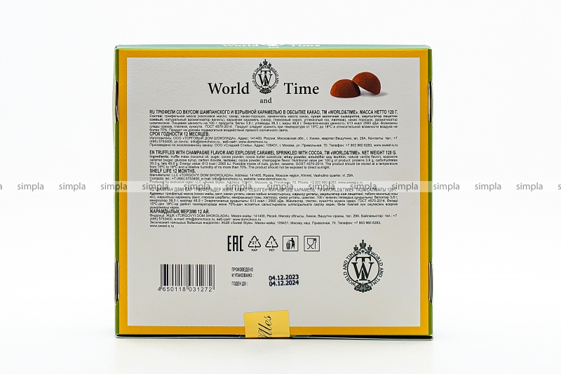 В нашем интернет-магазине Вы можете купить "Нежный трюфель World & Time со вкусом шампанского и взрывной карамелью в обсыпке какао 120 гр" по низкой оптовой цене с быстрой и удобной доставкой в г.Калининград (Калининградская область). Мы предлагаем широкий ассортимент импортных сладостей и напитков от проверенных поставщиков и реализуем продукцию во всех регионах РФ.