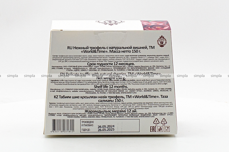 В нашем интернет-магазине Вы можете купить "Нежный трюфель World&Time с натуральной вишней 150 гр" по низкой оптовой цене с быстрой и удобной доставкой в г.Калининград (Калининградская область). Мы предлагаем широкий ассортимент импортных сладостей и напитков от проверенных поставщиков и реализуем продукцию во всех регионах РФ.