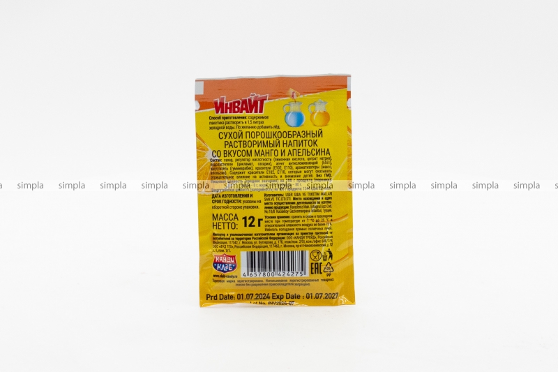 В нашем интернет-магазине Вы можете купить "Растворимый напиток ИНВАЙТ МАНГО-АПЕЛЬСИН 12г" по низкой оптовой цене с быстрой и удобной доставкой в г.Калининград (Калининградская область). Мы предлагаем широкий ассортимент импортных сладостей и напитков от проверенных поставщиков и реализуем продукцию во всех регионах РФ.