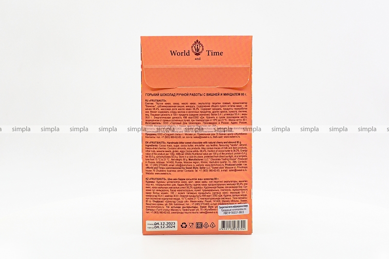В нашем интернет-магазине Вы можете купить "Шоколад горький World & Time «FRUIT&NUTS» вишня с миндальными орешками 80 гр" по низкой оптовой цене с быстрой и удобной доставкой в г.Калининград (Калининградская область). Мы предлагаем широкий ассортимент импортных сладостей и напитков от проверенных поставщиков и реализуем продукцию во всех регионах РФ.