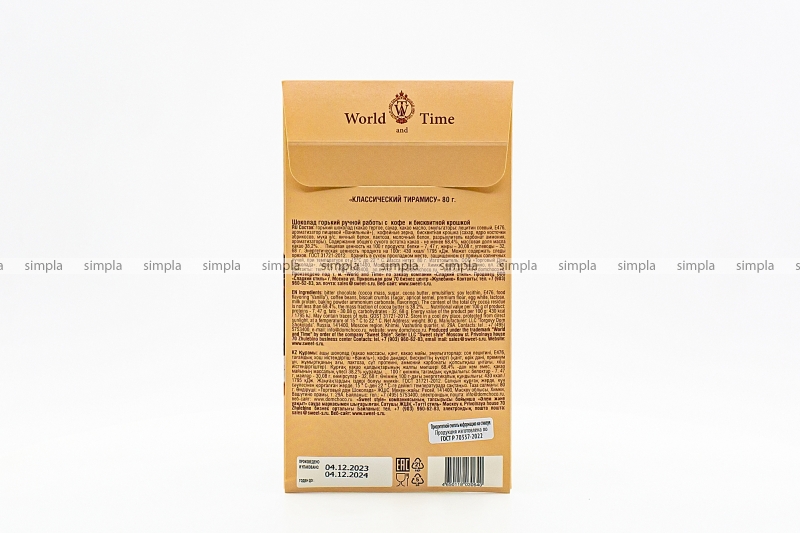 В нашем интернет-магазине Вы можете купить "Шоколад горький World & Time с кофе и бисквитной крошкой «Классический тирамису» 80 гр" по низкой оптовой цене с быстрой и удобной доставкой в г.Калининград (Калининградская область). Мы предлагаем широкий ассортимент импортных сладостей и напитков от проверенных поставщиков и реализуем продукцию во всех регионах РФ.